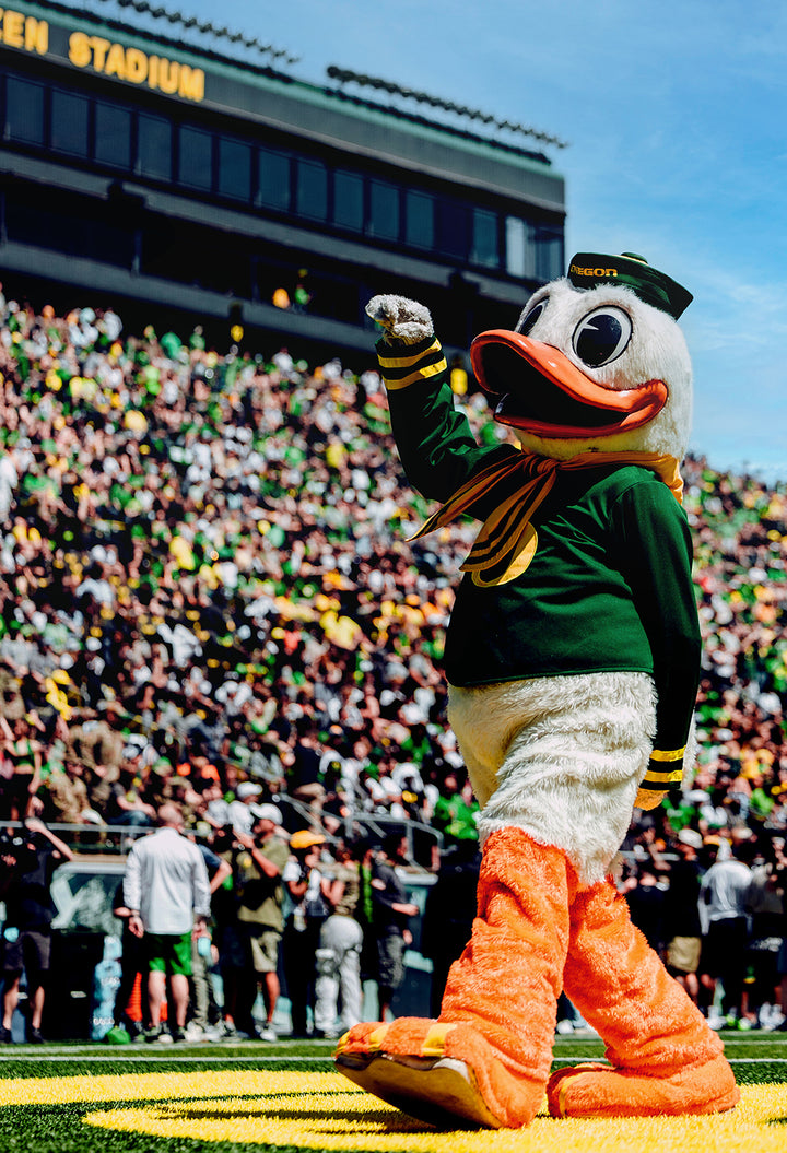 The Oregon Duck is more than a mascot, he’s an embodiment of school spirit, mischief, and unwavering support for the University of Oregon. With his playful, ever‑charming presence, The Duck unites fans around the world in celebration and support of the Oregon Ducks, with no bounds or limits.