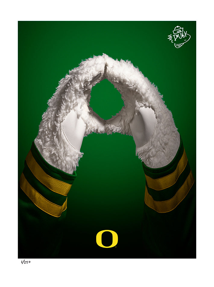 This custom print captures The Duck proudly “throwing the O,” the iconic hand gesture that unites Oregon fans everywhere. It’s more than a pose. It’s a symbol of belonging, connection, and passion, for our University of Oregon community.
